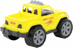 Den gule plastbil Legion er et fremragende valg for små chauffører. Takket være friløbshjul og robust udførelse kan børn nyde masser af sjov både inde og ude. Den åbne ladflade giver plads til at transportere småt legetøj, mens det robuste look med detaljerede elementer understøtter kreativ og aktiv leg.