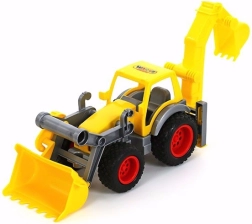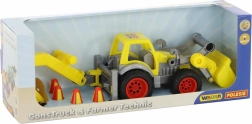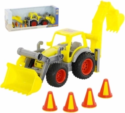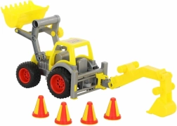 Traktoren er udstyret med gummidæk for stille og jævn kørsel. Skovl og gravemaskine er lette at betjene og udvikler finmotorik, fantasi og koordination. I pakken finder du også 4 kegler til afmærkning af byggepladsen og til at finde på egne legescenarier.