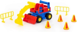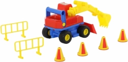 Opdag den robuste børnegraver ConsTruck fra WADER – et farverigt byggekøretøj med gummidæk, fuldt bevægelige dele og mulighed for mekanisk betjening. Sættet indeholder 4 kegler og 2 vejspærringer til realistisk byggeleg fra 1 år.