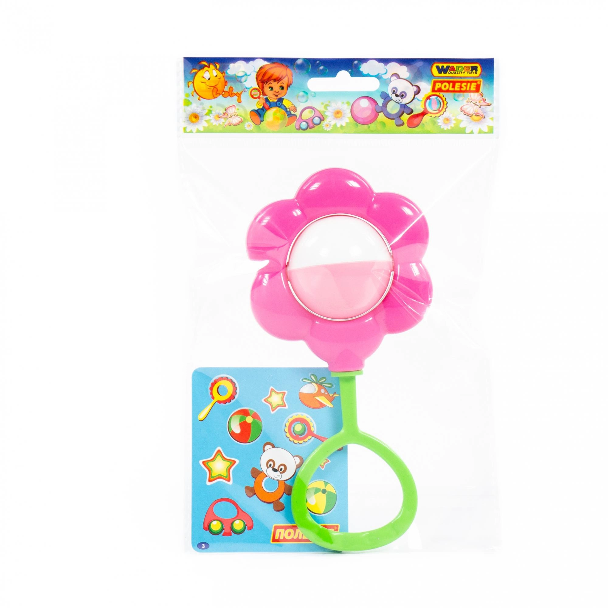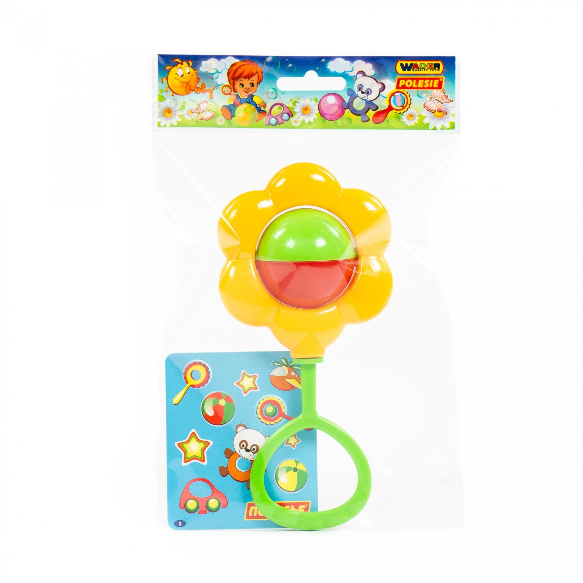Den roterende kugle i midten af blomsten skaber en behagelig lyd og farverig bevægelse, som fanger og stimulerer barnets sanser.
