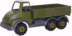 Robust byggelastbil med lad i militær stil fra Wader, der glæder små byggere både inde og ude. Den byder på store mål 41 × 16 × 18 cm, er uden drivkraft for sikker leg og er certificeret fra 1 år. Leveres i praktisk net.