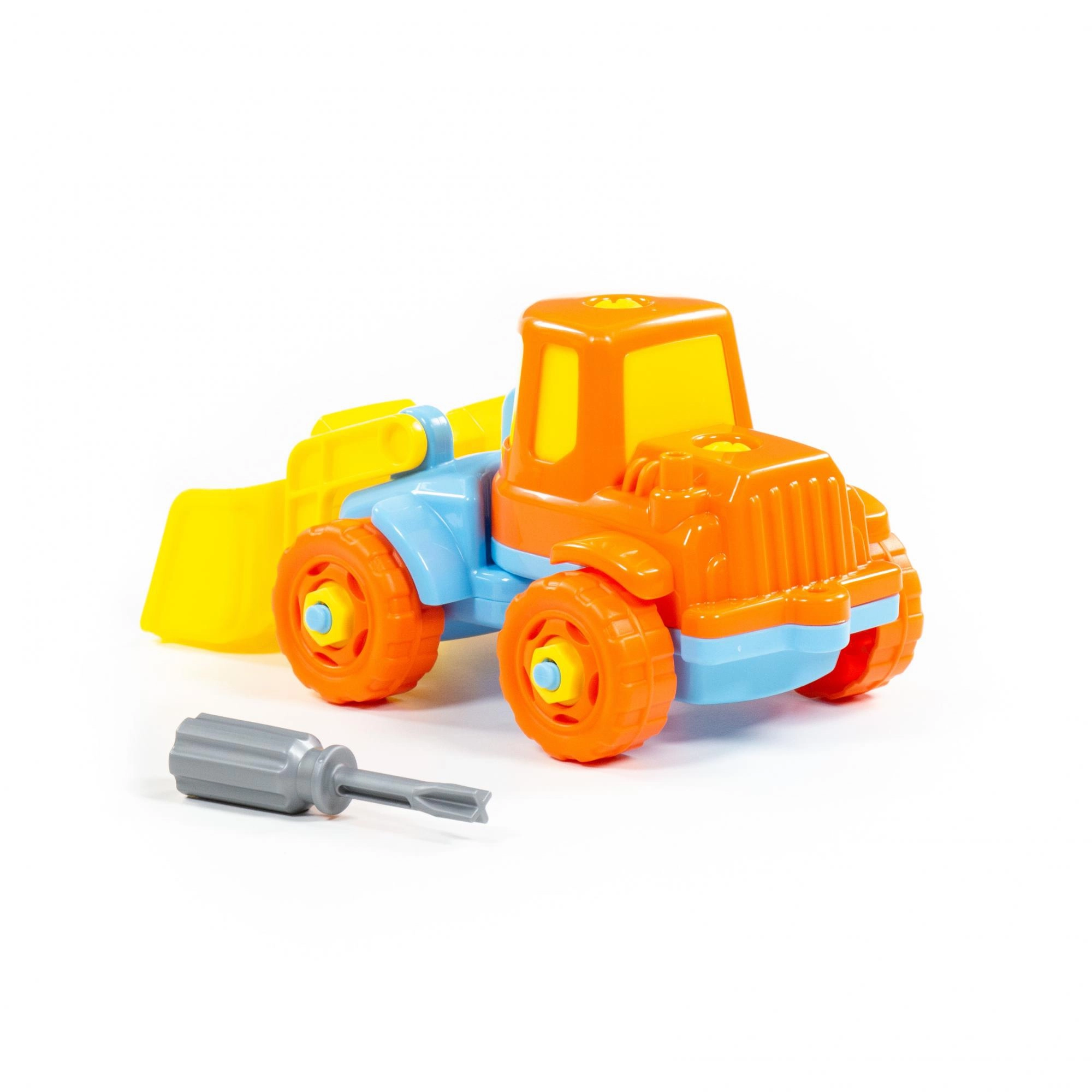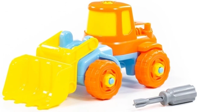 Der medfølger en simpel børneskruetrækker – børn kan skille gravemaskinen ad og samle den igen, hvilket træner finmotorik og tålmodighed.