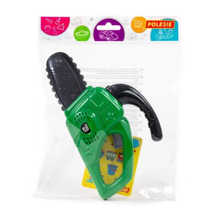 Sjov børnekædesav i klar grøn farve, der giver en realistisk oplevelse af at arbejde med rigtigt værktøj. Når man trykker på håndtaget, spinner kæden, så børn kan finde på kreative legescenarier og udvikle både motorik og fantasi. Et perfekt supplement til ethvert børneværksted!