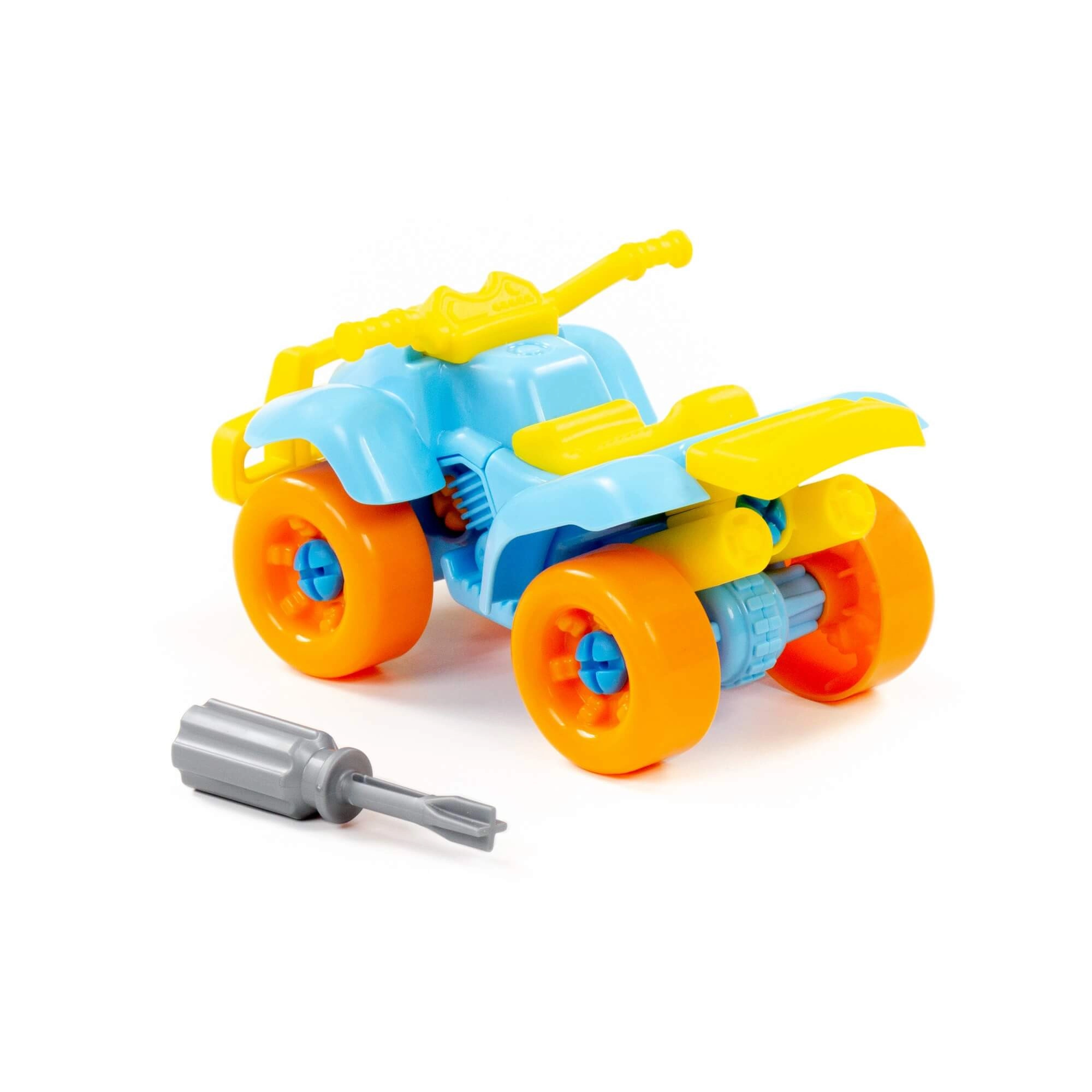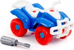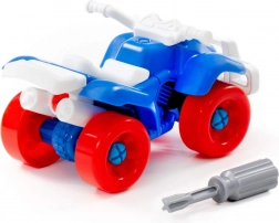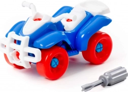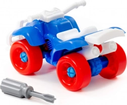 Denne legesyge skrue-firhjulet er ideel til nysgerrige børn, der elsker at opdage og bygge. Delene er tilpas store og farveopdelte, så de er lette at håndtere. I pakken er der en børneskruetrækker, så børn kan skille køretøjet ad og samle det igen – på en sjov måde træner de hånd–øje-koordination og koncentration.