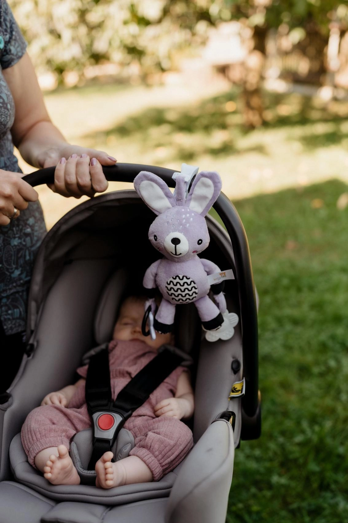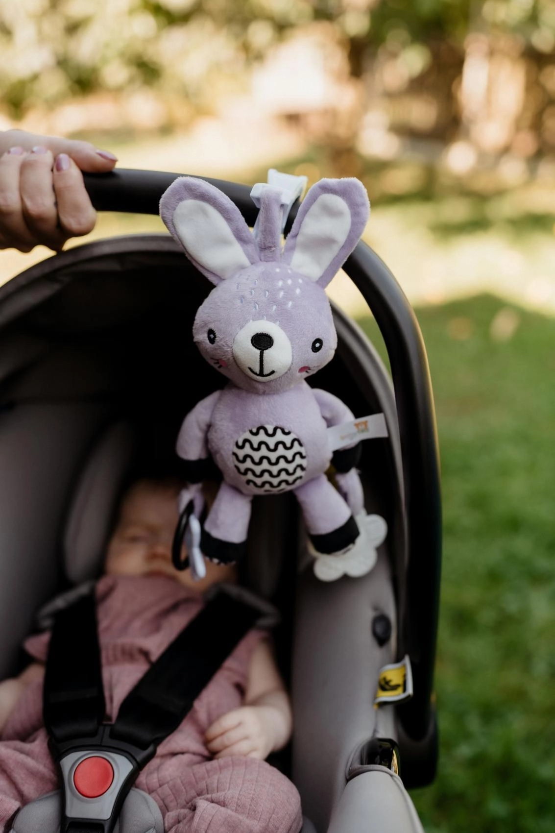 Praktisk klips til hurtig fastgørelse på klapvogn, autostol, tremmeseng eller aktivitetsbue – leg og ro lige ved hånden, når som helst og hvor som helst.
