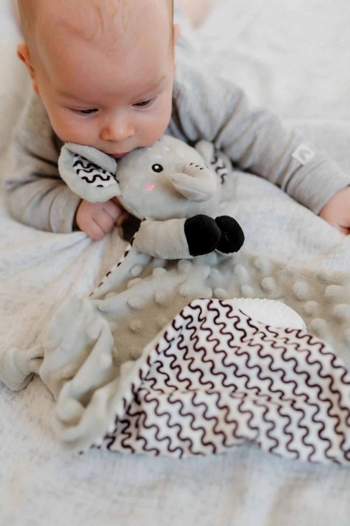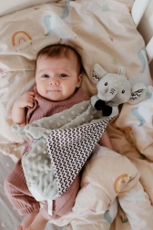 Forkæl din baby med en beroligende ven til hverdag. Den elefantformede nusseklud BABYTED er lavet af ekstra behagelig minky med tydelig 3D-struktur, som stimulerer berøringssansen og indbyder til kram. Takket være den lette konstruktion og knuderne i hjørnerne kan selv de mindste hænder nemt gribe den.
