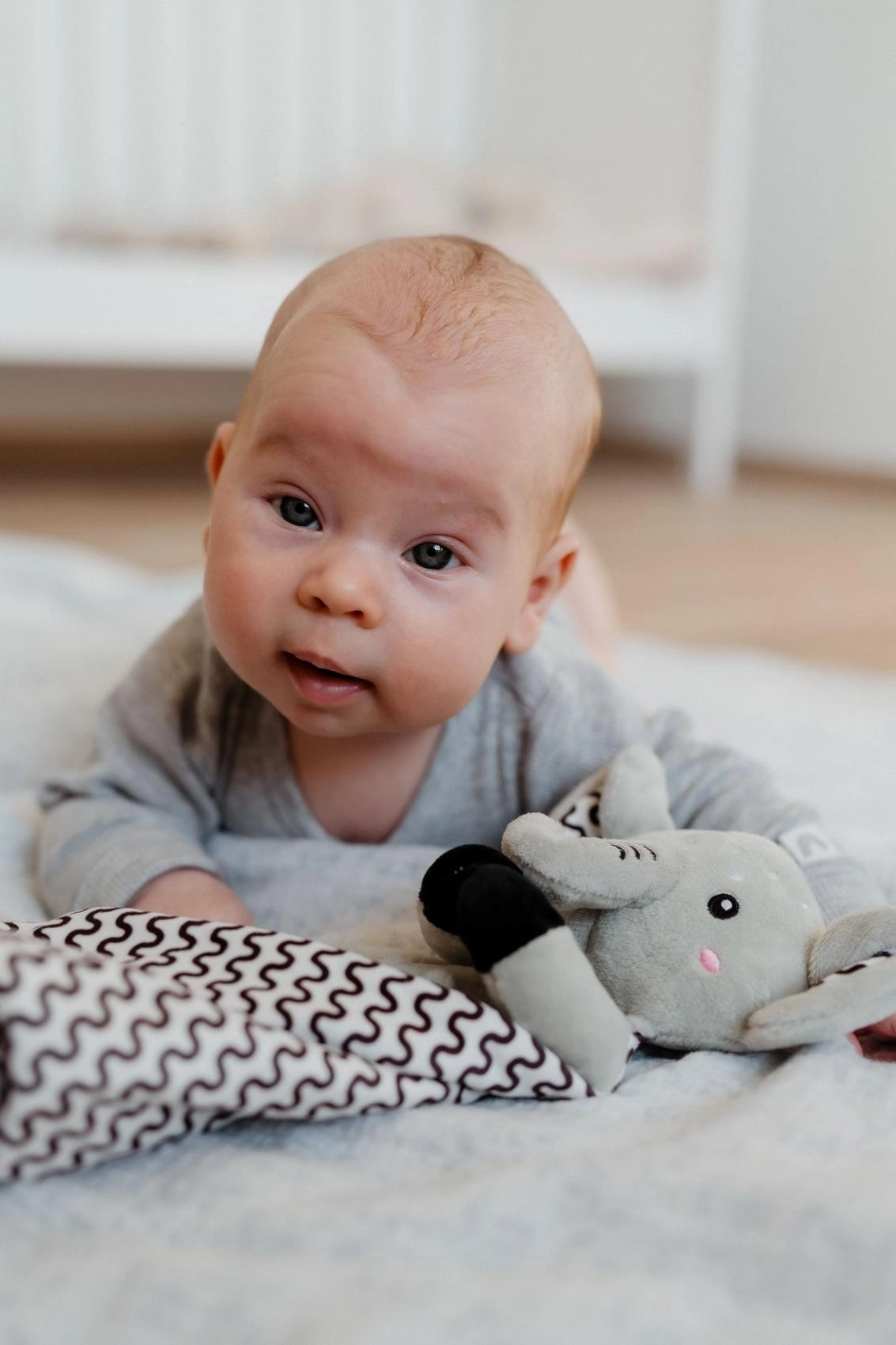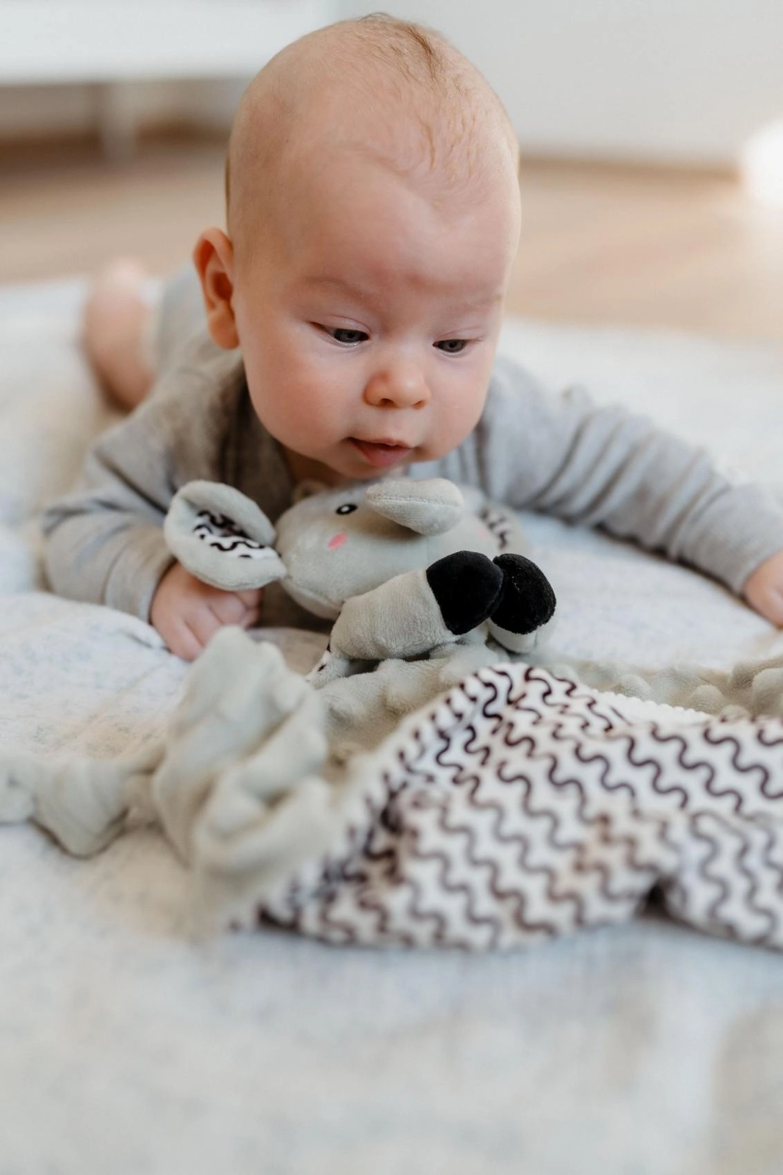 Ultrablødt materiale med taktile prikker giver barnet komfort, tryghed og mild sensorisk stimulering ved kram og puttetid.