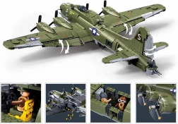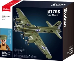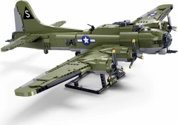 Byg en legende fra Anden Verdenskrig – amerikansk tungt bombefly B-17G Flying Fortress i skala 1:44. SLUBAN-byggesættet tilbyder 1270 dele af holdbar ABS, detaljeret skrog, vinger og cockpit, bevægelige elementer inklusive indtrækkeligt landingsstel og drejelige propeller, 3 minifigurer af besætningen og en udstillingsstand. Kompatibelt med LEGO og andre mærker.