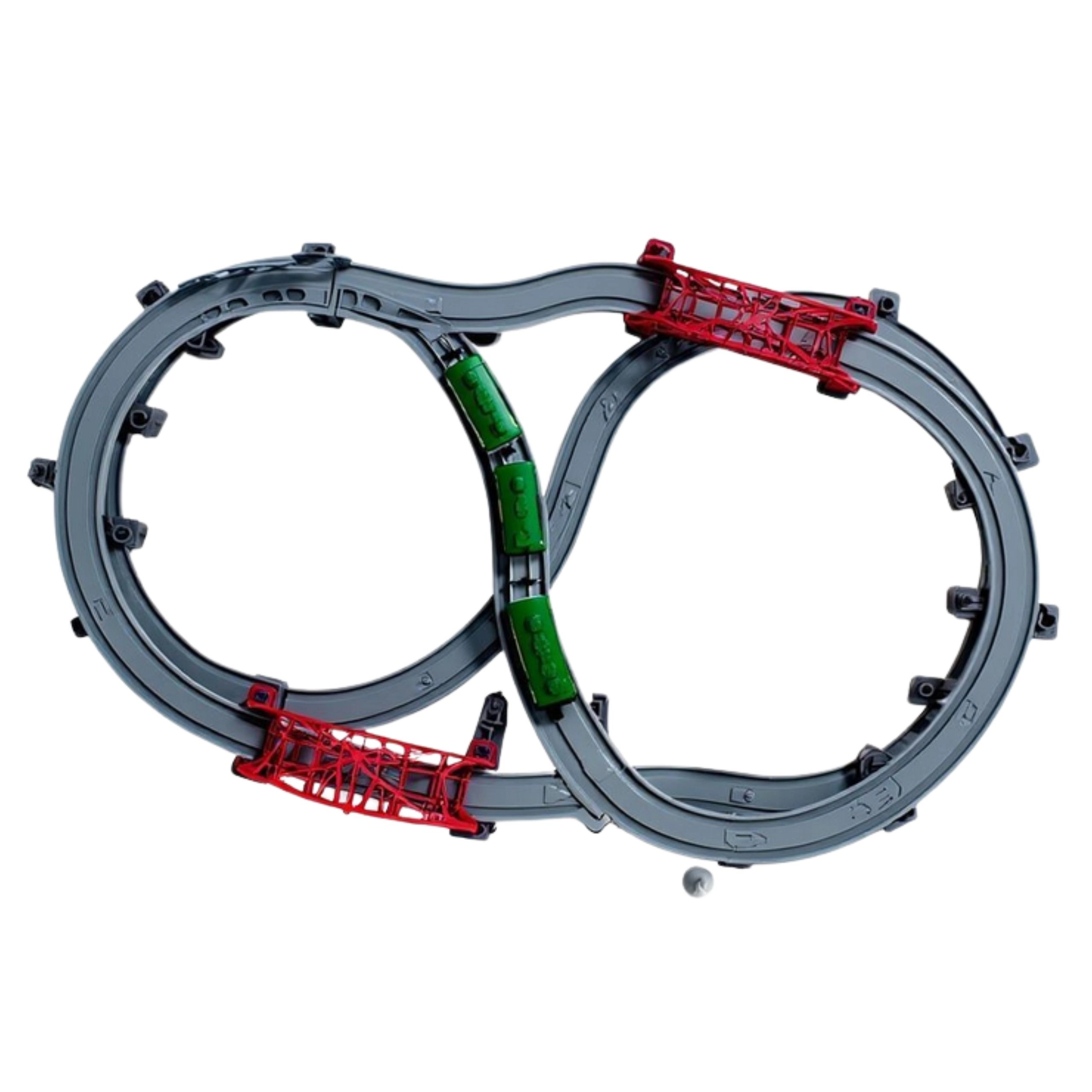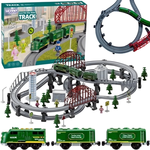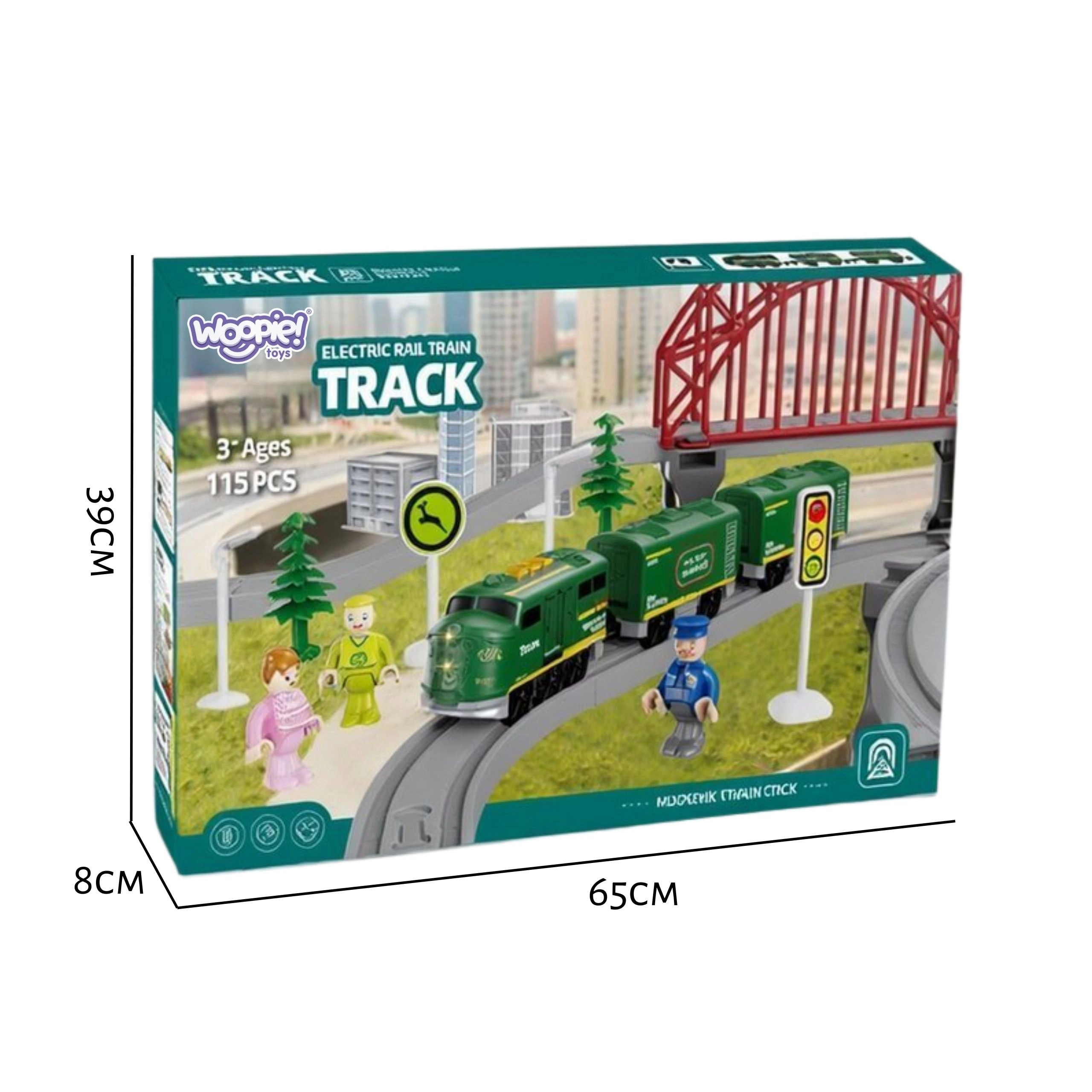 Den store Woopie-togbane bringer realistisk jernbanestemning ind på børneværelset. Det batteridrevne lokomotiv kører jævnt frem og tilbage, ledsaget af realistiske to lyde og lysende forlygter. Med de variable dele kan der skabes enkle kredsløb eller komplekse netværk med broer, viadukter og sporskifter.