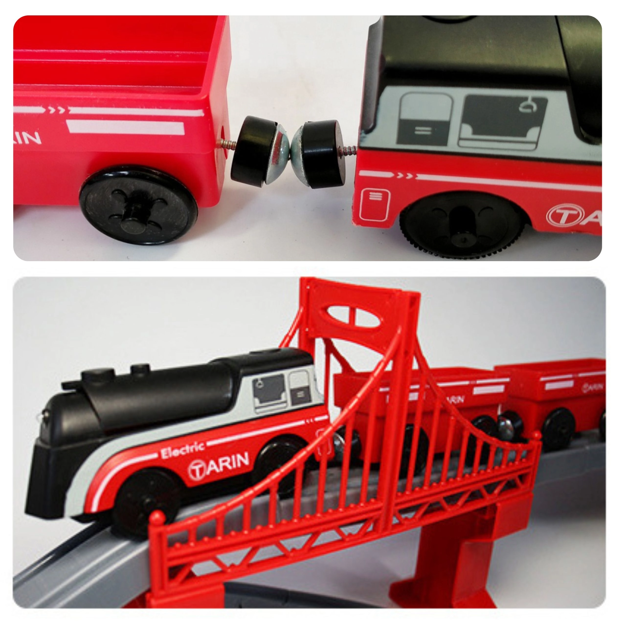 Lokomotivet med 1× AAA-batteri sætter toget i bevægelse på sporet og giver legen autenticitet. Børn nyder en jævn tur over broen og gennem tunnelen.