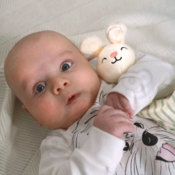 - tummy time, beroligelse, første greb, fotografering af milepæle