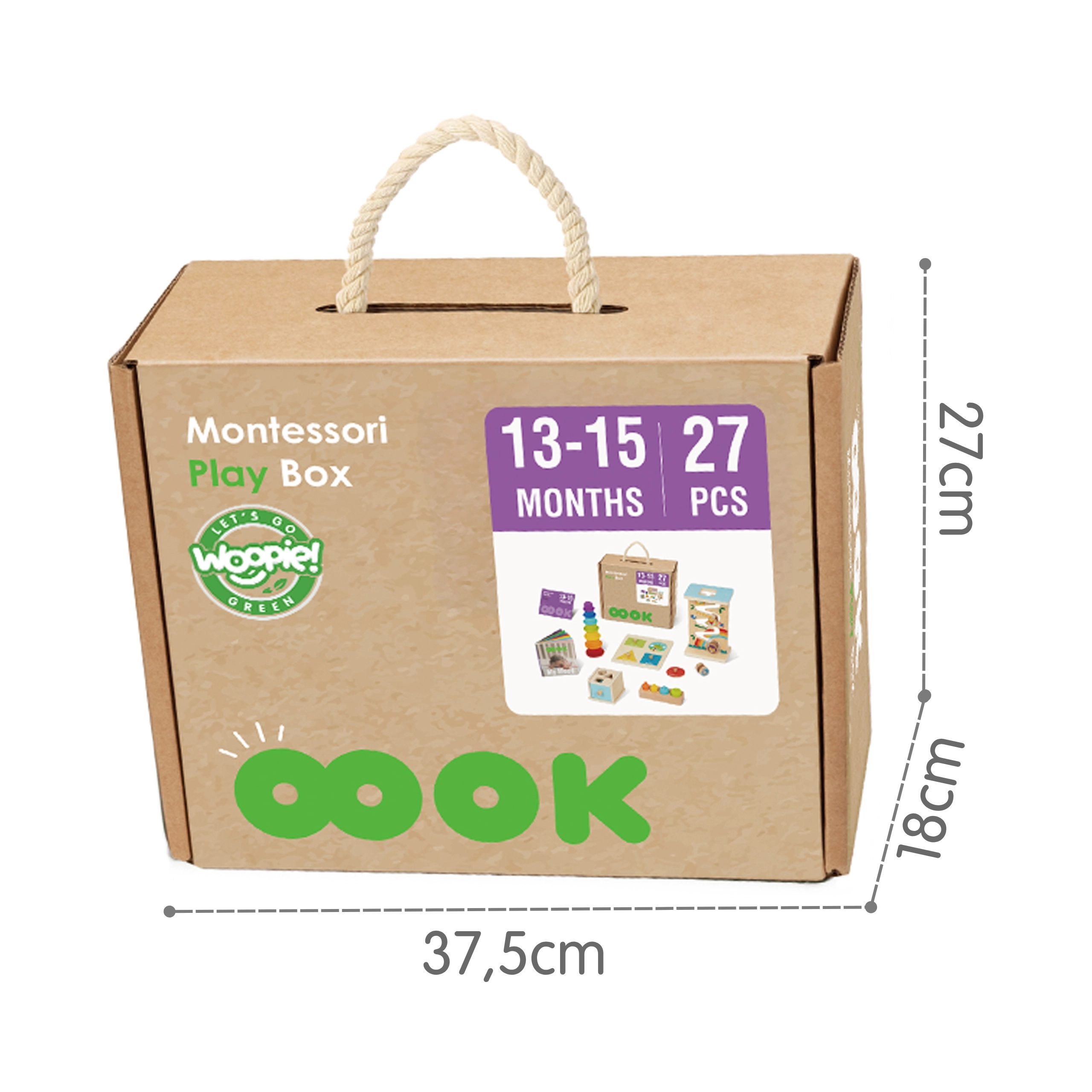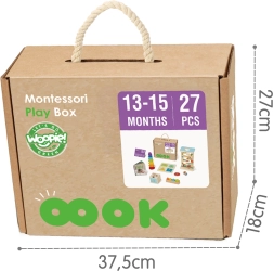 Træssættet Montessori 6 i 1 fra Woopie Green tilbyder seks smart designede aktiviteter til børn i alderen 13–15 måneder. Det kombinerer sansestimulering, finmotorisk udvikling og leg som læring – fra sortering af former til indsætning og stabling samt de første skridt i at forstå farver og årsag–virkning. Takket være høj trækvalitet er det sikkert, holdbart og miljøvenligt, ideelt som gave og til daglig udforskning.