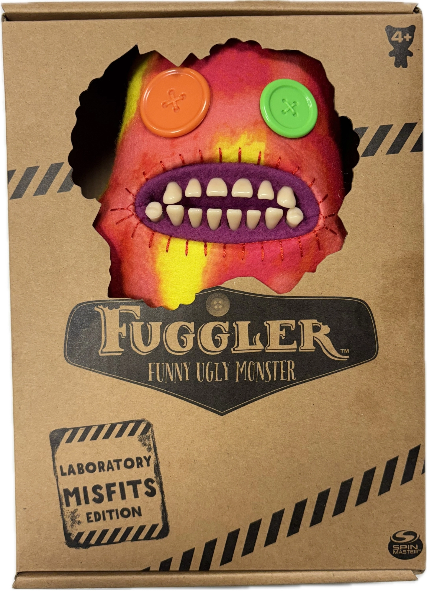 Plysbamsen FUGGLER Sasquoosh fra serien Fuggler Laboratory Misfits kombinerer grotesk humor med uventede detaljer. Den orange-gule krop, knapøjne og iøjnefaldende tandsæt skaber et uomtvisteligt udseende, der både får dig til at grine og blive overrasket. Perfekt til fans af utraditionelle legetøj og samlere.