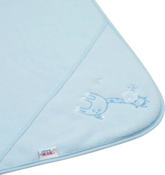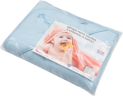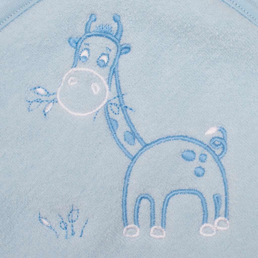Blødt børnehåndklæde med hætte i frotté er ideelt til både babyer og større børn. Det varmer dejligt efter badet, tørrer hurtigt, suger fremragende, og hætten beskytter hovedet mod kulde. Det prydes af en glad girafbroderi.