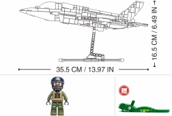 Sættet indeholder en original pilot-minifigur, våbenophæng med simuleret bevæbning (raketter og bomber) samt en samlbar stander til effektfuld præsentation. Den høje kvalitet af ABS-plast sikrer styrke, stabilitet og lang levetid. Byggesættet er kompatibelt med produkter fra andre producenter. Understøtter udvikling af finmotorik, kreativitet og tålmodighed.