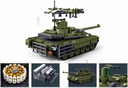 Bygge- og legeglæde med realistiske funktioner: drejetårn, lang kanon, bevægelige bælter og raffinerede pansringsdetaljer. Byggesættet indfanger troværdigt karakteren af den moderniserede T-90M, inklusive det forbedrede tårn og interiørelementer.