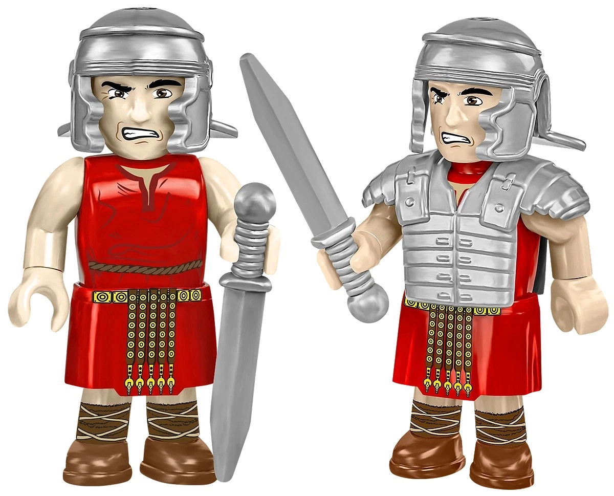 Lad legionæren med scutum-skjold og gladius-sværd forsvare lejren mod bevæbnede krigere. Aftageligt tilbehør og prints understøtter varieret leg.