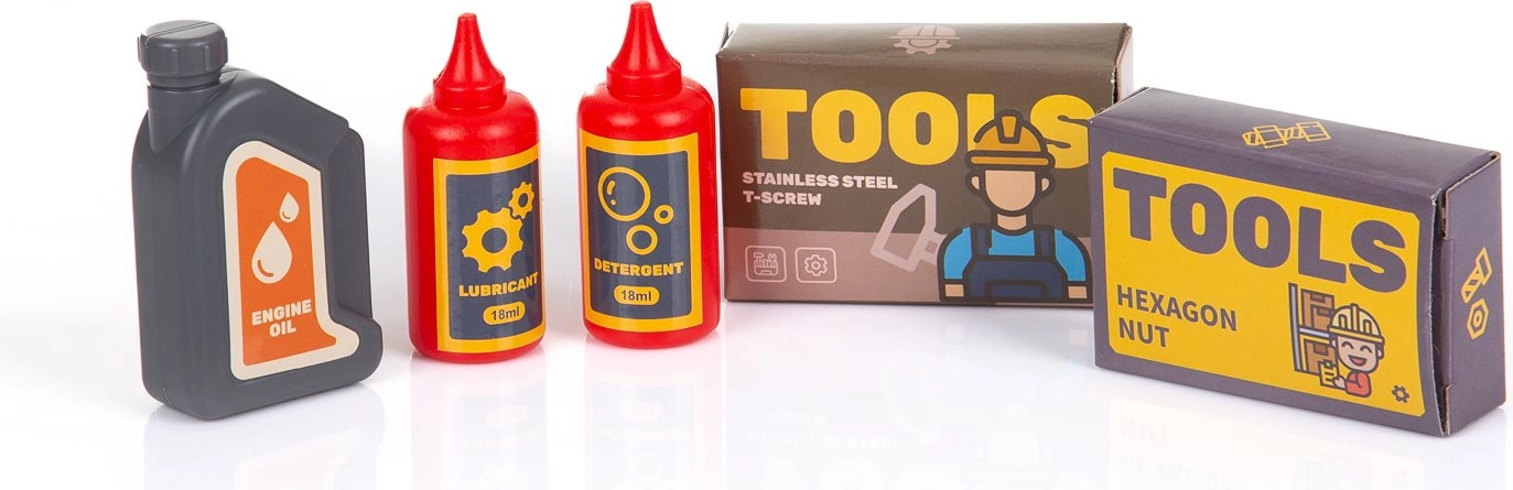 Indeholder børneværktøj og forbindelsesdele til at skrue, samle og træne fingerfærdighed og fantasi.