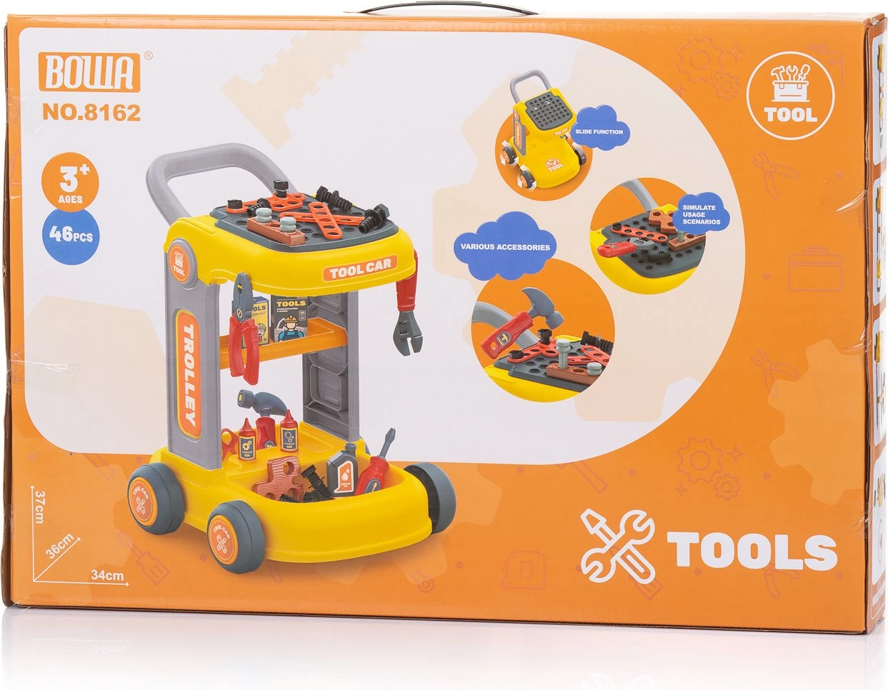 Støt børns fantasi og færdigheder med CHIPOLINO børnevogn med værktøj. Det mobile værksted på hjul med praktisk håndtag, arbejdsplade og opbevaringsrum holder alle dele pænt samlet ét sted. Ideel til sikkert at efterligne reparation og byggeri.