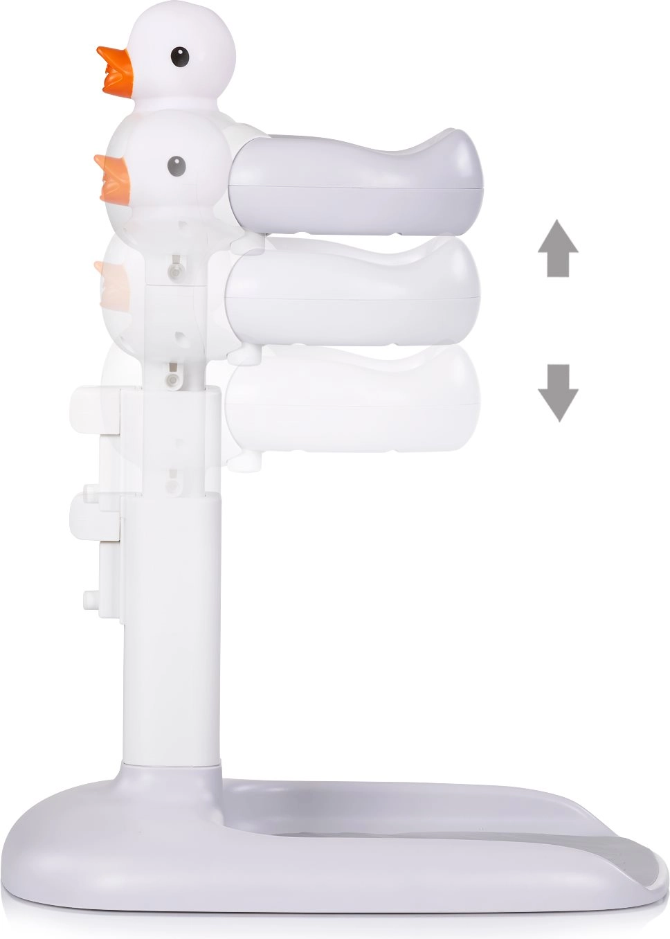 Børne-badestativet CHIPOLINO Duck skiller sig ud med et legende design, der hjælper børn med at opfatte badning positivt. Takket være højdejusteringen kan det nemt tilpasses både barnets behov og forældrenes komfort. Den brede, stabile base med skridsikker overflade giver tryghed i hverdagsbrug.