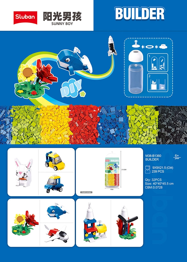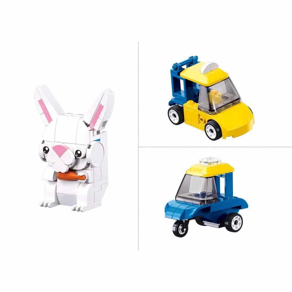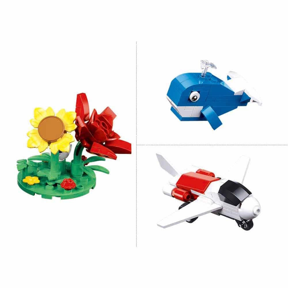 Sluban Builder 6-i-1 byggesættet kombinerer leg og læring. Fra ét sæt kan du skabe flere forskellige modeller – fra fly og køretøjer til en kanin, blomster eller små scener. Takket være kompatibilitet med LEGO, COBI og Mega Bloks kan du nemt udvide dine builds og føje nye idéer til.