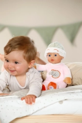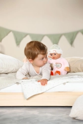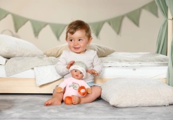 Den lyserosa sovedragt fra BABY born for babies-kollektionen er designet til de blideste kram og rolig indsovning. Den bløde stofkrop er behagelig at røre ved, og den integrerede rangle støtter udviklingen af hørelse og opmærksomhed allerede hos nyfødte. Med den kompakte størrelse på 30 cm er dukken let for børn at holde om, kramme og tage med i sengen eller barnevognen.