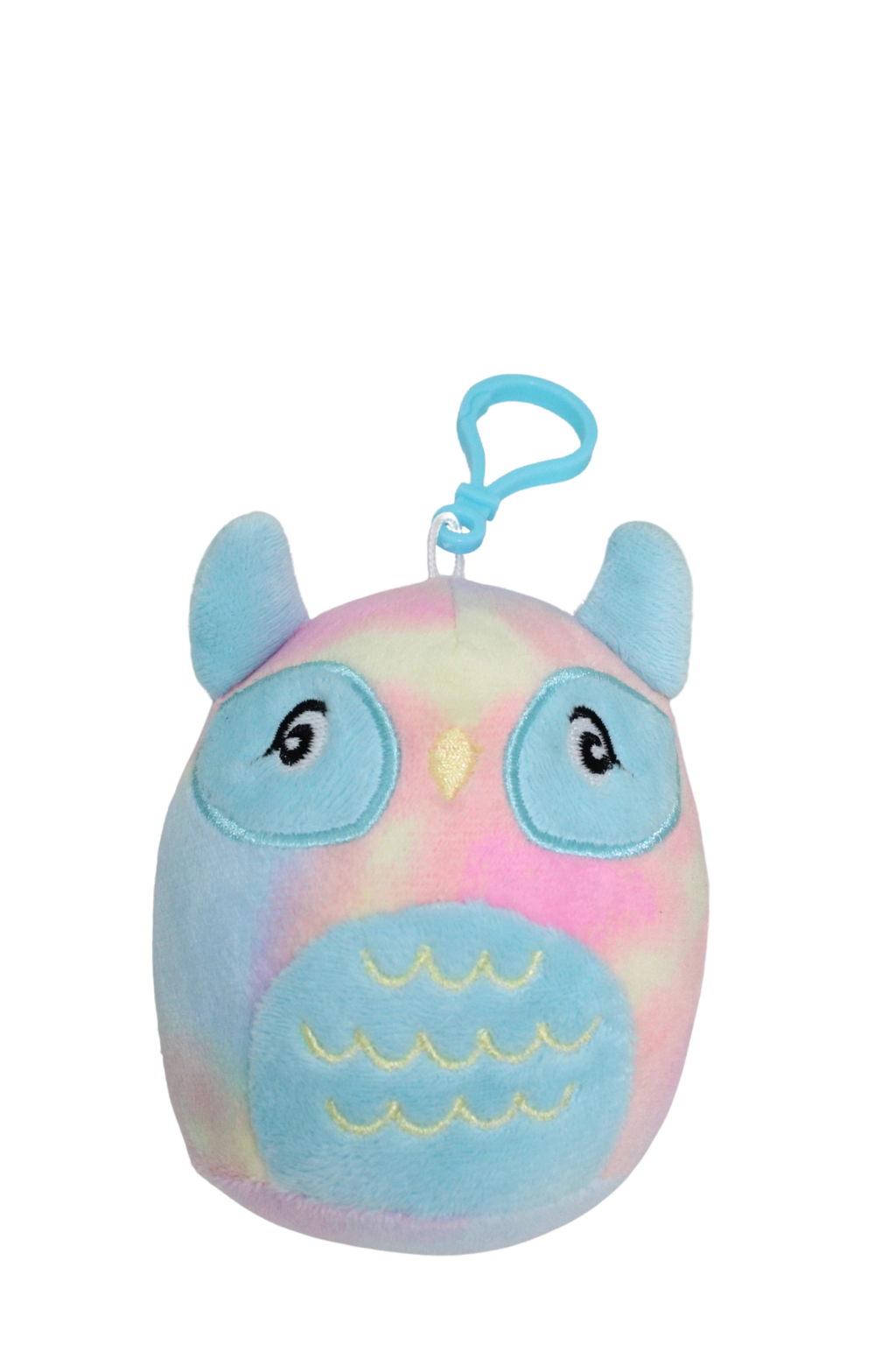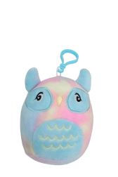 Pastelfarvet ugle med blød plys og hjerteformet klips glæder både på barnevogn og rygsæk. Sikker brodering og bløde materialer for rolig kramning.