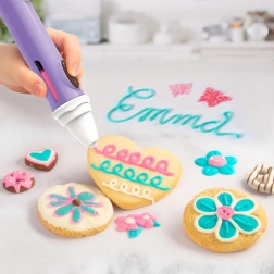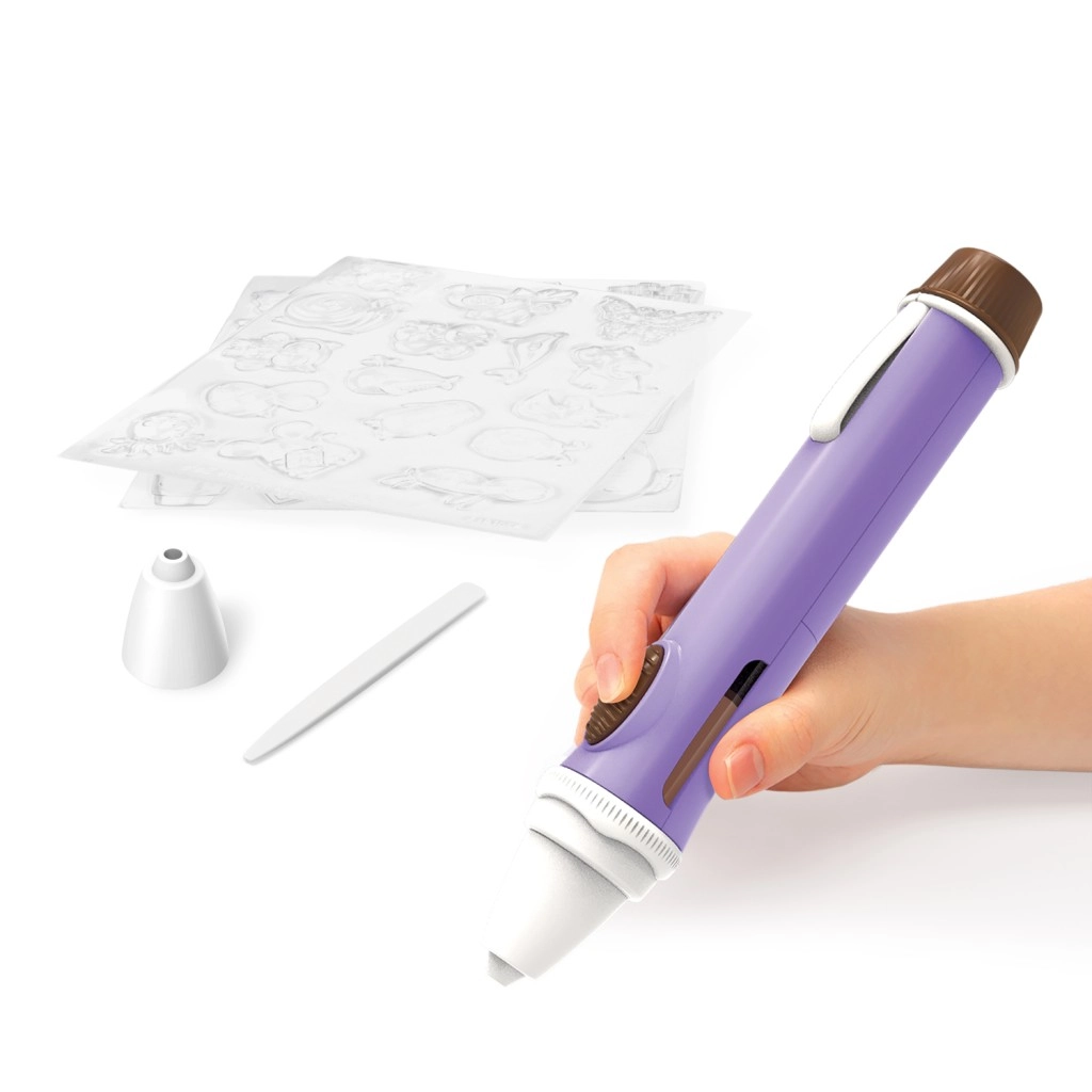 Forvandl søde lækkerier til små kunstværker. Chokoladepennen lader børn skrive, tegne og skabe forskellige former af smeltet chokolade. Takket være det ergonomiske greb og den præcise spids er den behagelig at bruge selv for små hænder, og den hurtighærdende chokolade giver øjeblikkelig effekt på småkager, cupcakes, frugt og andre delikatesser.