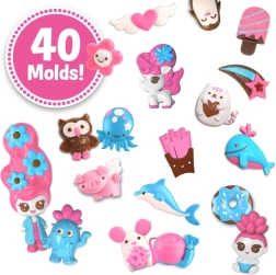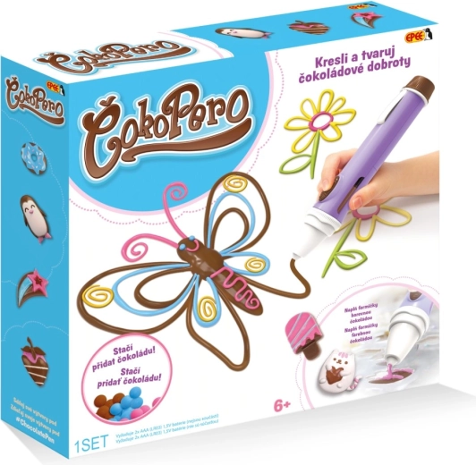 Sættet indeholder to gennemsigtige forme med i alt 50 motiver – fra dyr og hjerter til blomster og dekorationer. Børn kan nemt lave smukke chokoladepynt og figurer, der glæder familie og venner. Fyld blot pennen med smeltet chokolade efter anvisningen, tryk på knappen og begynd at skabe.