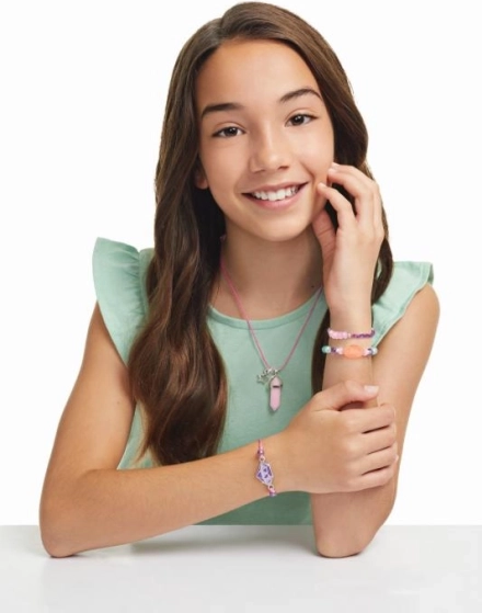 Dette kreative sæt fra kollektionen Positive Gems Jewelry fra MAKE IT REAL inspirerer til skabelse og udvikler finmotorik. Med overskuelige komponenter og nem trådning laver børn en original halskæde og tre matchende armbånd, som fuldender ethvert outfit.