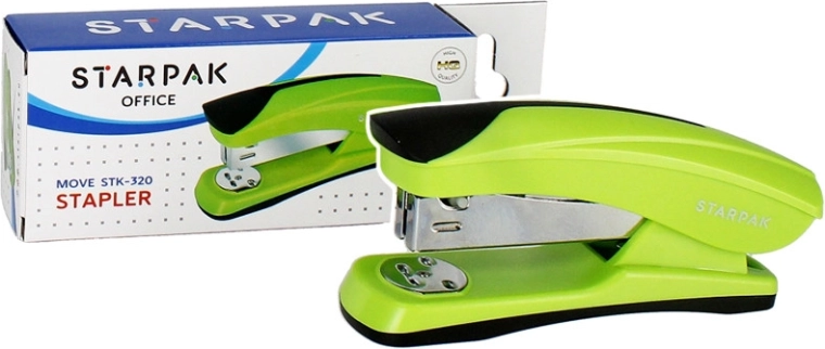 Praktisk grøn hæftemaskine med mål 12 × 5 cm, ideel til både skole og hjem. Velegnet til børn fra 3 år, nem at bruge og kompatibel med klammer nr. 246–266. Kompakte mål, nem hæftning og robust udførelse til daglig brug.