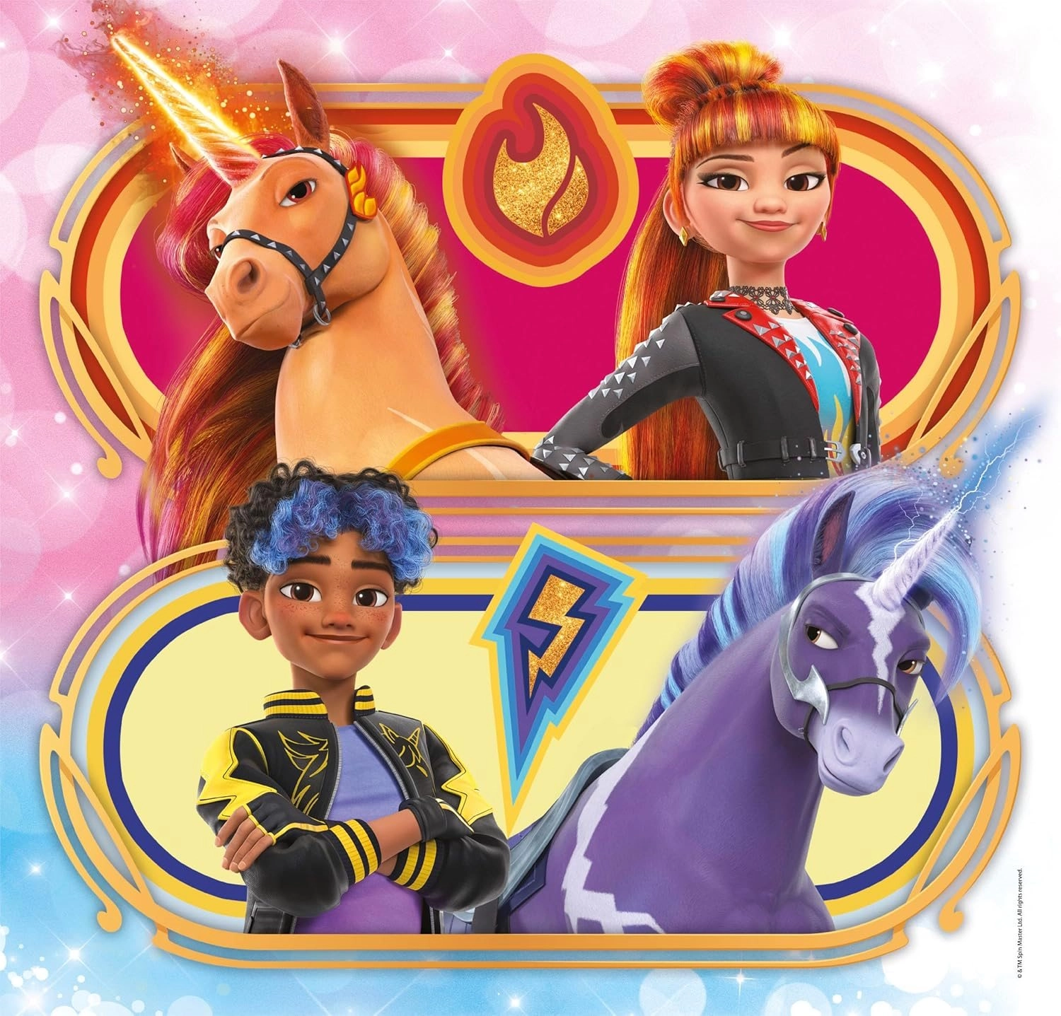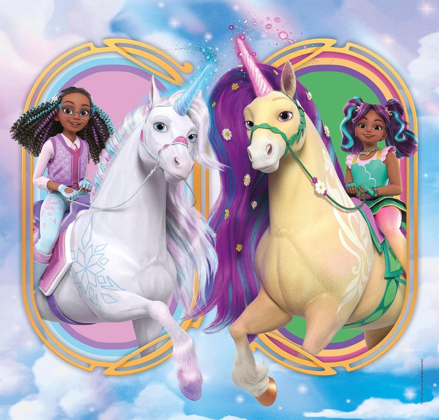 Oplev en verden af magiske enhjørninger med et smukt sæt af tre puslespil, ideelt til børn. Hvert puslespil har 48 brikker og måler samlet cirka 21 × 20,5 cm. Takket være den robuste papkonstruktion samles brikkerne nemt og passer godt sammen.