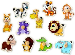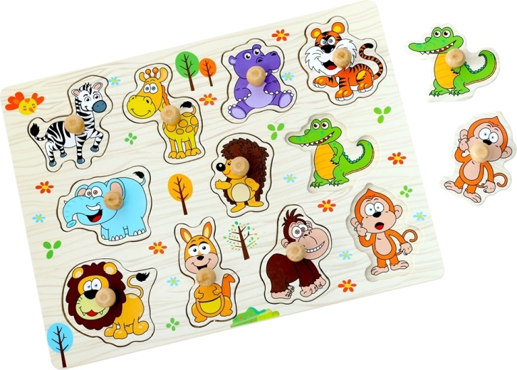 Træ-indlægningspuslespillet Safari giver børn glæden ved at opdage og lære. Hver af de 11 brikker har et praktisk greb, så de er nemme at holde for små hænder. Børn lærer på en sjov måde at genkende former og dyr, og de styrker tålmodighed og koncentration.