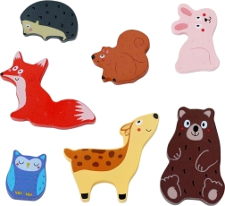 Dette kvalitets-træpuslespil med skovdyr vil begejstre de mindste opdagere fra 18 måneder. Den robuste base og de kraftige brikker i form af ræv, bjørn, hjort, ugle, kanin, pindsvin og egern er designet til let greb for små hænder. De farverige illustrationer understøtter genkendelse af former og dyr og leder naturligt til den første legende læring.