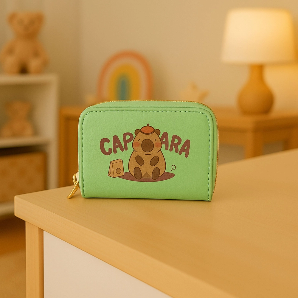 Denne stilfulde pung med kapybara-motiv kombinerer et sødt look med gennemtænkt funktionalitet. To uafhængige rum med dobbelt lynlås og harmonikainddelt indretning sørger for orden i dine betalingskort, kontanter, mønter og små dokumenter. Den kompakte størrelse 12,5 × 8,5 × 4,5 cm passer i håndtaske, bæltetaske og lomme.