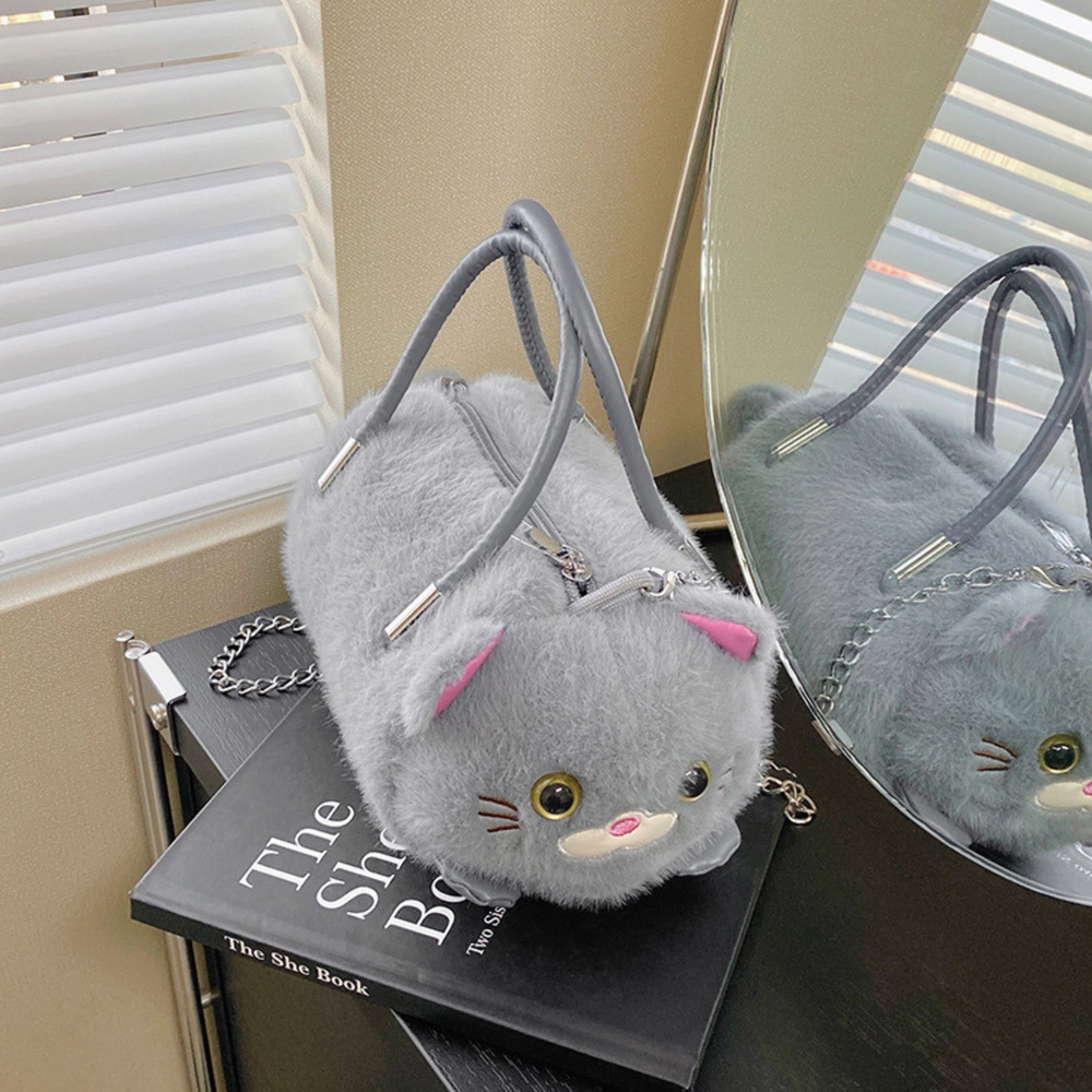 Denne plys-taske i katteform imponerer ved første øjekast med sin bløde overflade og søde detaljer – ører, øjne og snude. Den kompakte størrelse er perfekt til nøgler, telefon, pung og andre nødvendigheder, mens lynlåsen holder indholdet sikkert.
