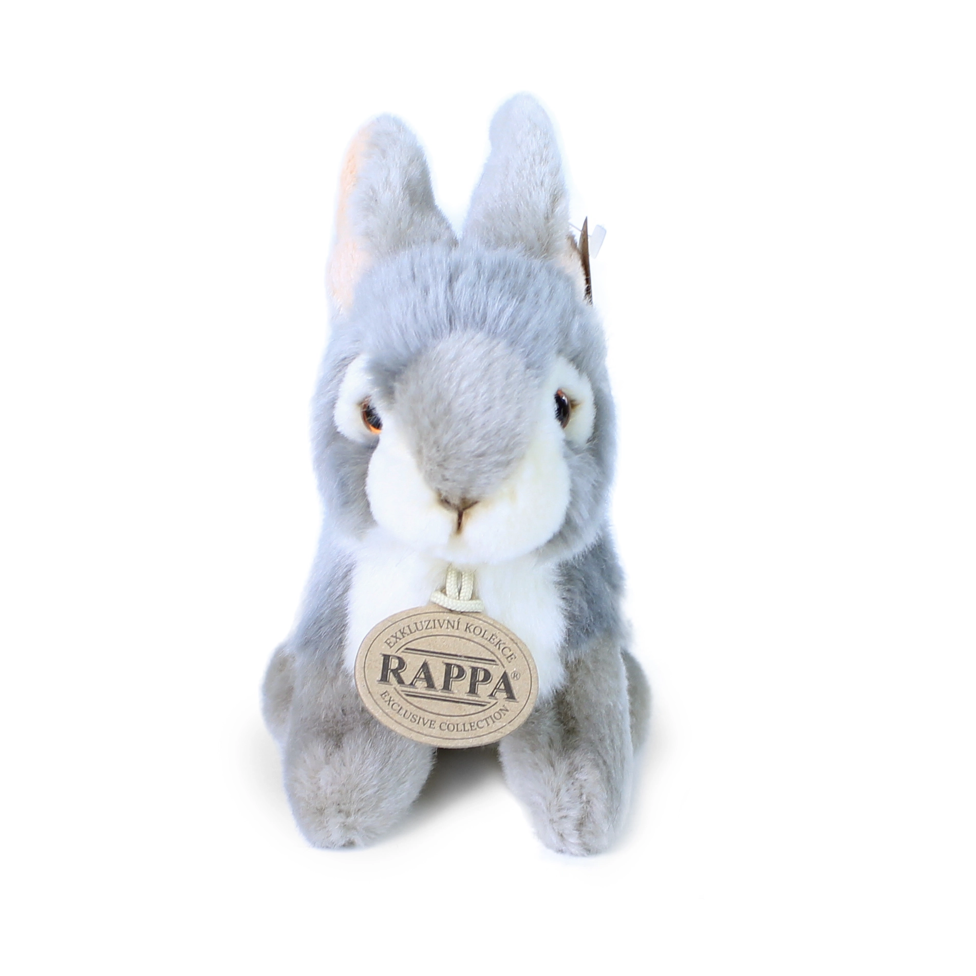 Denne grå plyskanin i siddende position vinder hjerter med sit realistiske udseende og ekstraordinære blødhed. Takket være håndbearbejdning ser den ud som en ægte kanin og bliver en favorit ledsager i sengen og på farten. Mærket RAPPA lægger vægt på kvalitet, sikkerhed og hensyn til naturen.