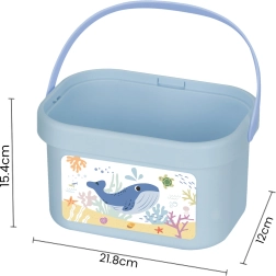 Alt opbevares i en holdbar spand med hank, hvis låg fungerer som en legeplade. Sættet understøtter hånd-øje-koordination, genkendelse af farver og former samt kreativ leg. Et godt valg til meningsfuld underholdning hjemme og på farten.