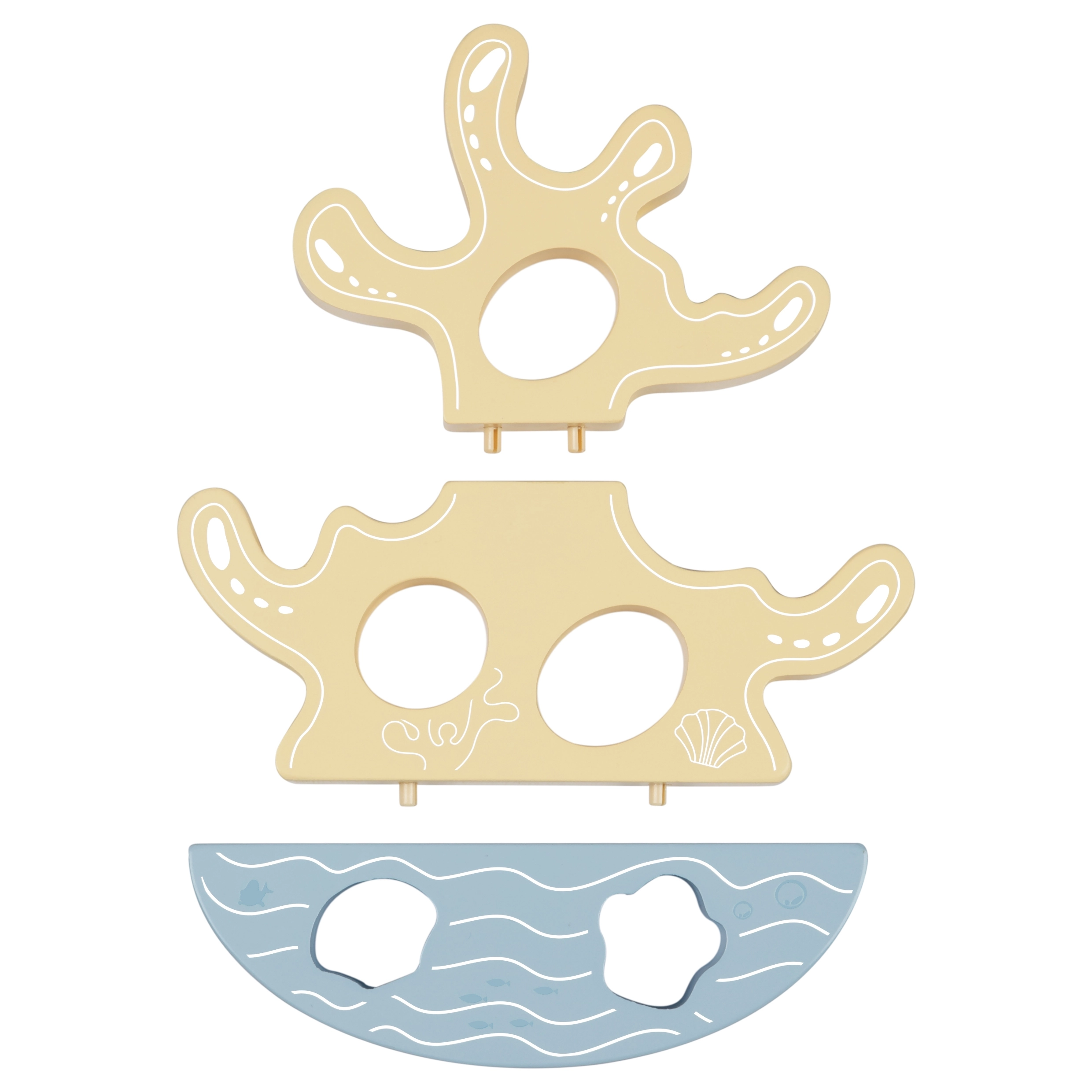 Et koraltårn på en vippende base indbyder til stable- og balanceleg. Udvikler finmotorik, logik og rumlig forståelse på en legende måde.