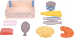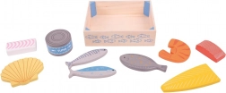 Denne trækasse er fyldt med frisk og sund fisk, såsom laks, tun i dåse og rejer. En fantastisk tilføjelse til trækøkkenet for alle små kokke. Bigjigs Toys træmad fremmer engagerende læring om madens oprindelse og forberedelse, forbedrer børns motorik og underholder samtidig børnene.