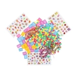 Pakken indeholder kvadratiske brikker, plastikperler i forskellige former og farver, elastiske bånd og skumklistermærker til at fuldende en unik stil. Et godt valg til kreativ hygge derhjemme, børnefødselsdage og som gave.