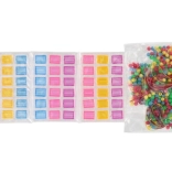 - 54 kvadratiske brikker, 300 perler, 9 elastiske bånd, 3 ark skumklistermærker