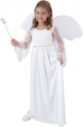 Det børnevenlige englekarnevalkostume forvandler din pige til et blidt væsen af lys. Takket være den behagelige pasform og lette materialer er det skønt at have på hele dagen. Den hvide farve og englevingerne skaber et imponerende look, der skiller sig ud til enhver begivenhed.