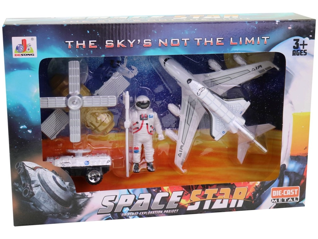 Dette rumsæt vil glæde alle drenge, der elsker raketter, astronauter og det uendelige univers. Den holdbare plastkonstruktion sikrer lang levetid og sikker leg, mens de kompakte mål gør det nemt at transportere og opbevare.