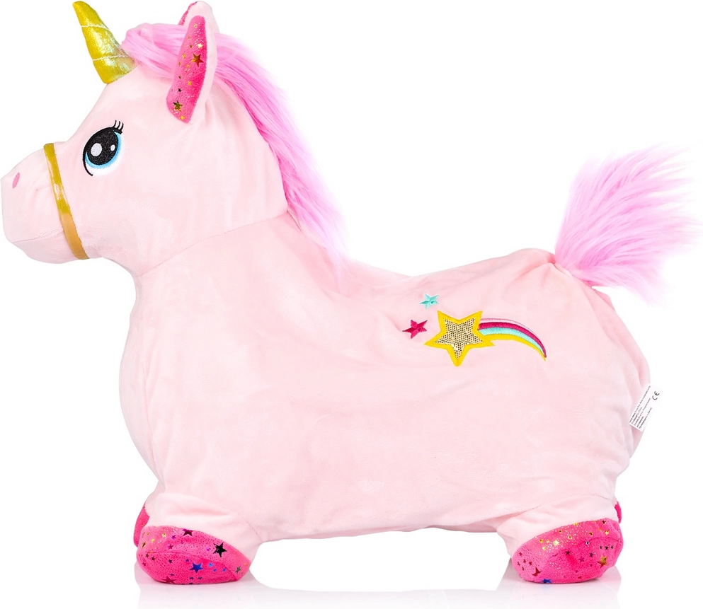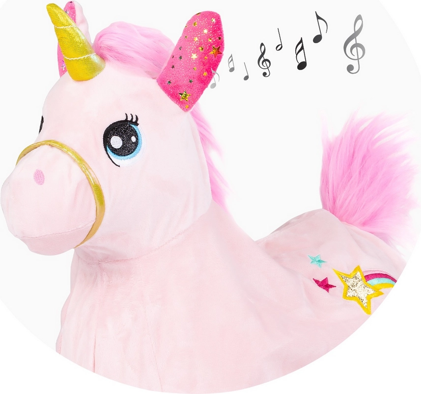 Hoppe-enhjørningen fra CHIPOLINO er en fantastisk legekammerat til aktiv leg. Børn får masser af sjov ved at hoppe, mens de naturligt styrker benene og forbedrer balancen. Fornøjelsen sikres af de glade melodier, der starter under legen, og det bløde, ergonomisk formede sæde giver komfort selv ved længere tids tumlen.