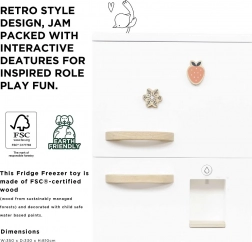 Dette fritstående børnekøleskab med fryser tilfører autentisk stemning til ethvert legekøkken. Retrodesign, solid trækonstruktion og gennemtænkte detaljer understøtter rolleleg og finmotorik. Køleskabet er kompatibelt med det store LE TOY VAN-køkken og underholder børn i timevis takket være magnetiske døre og tilbehør.