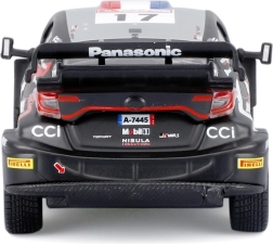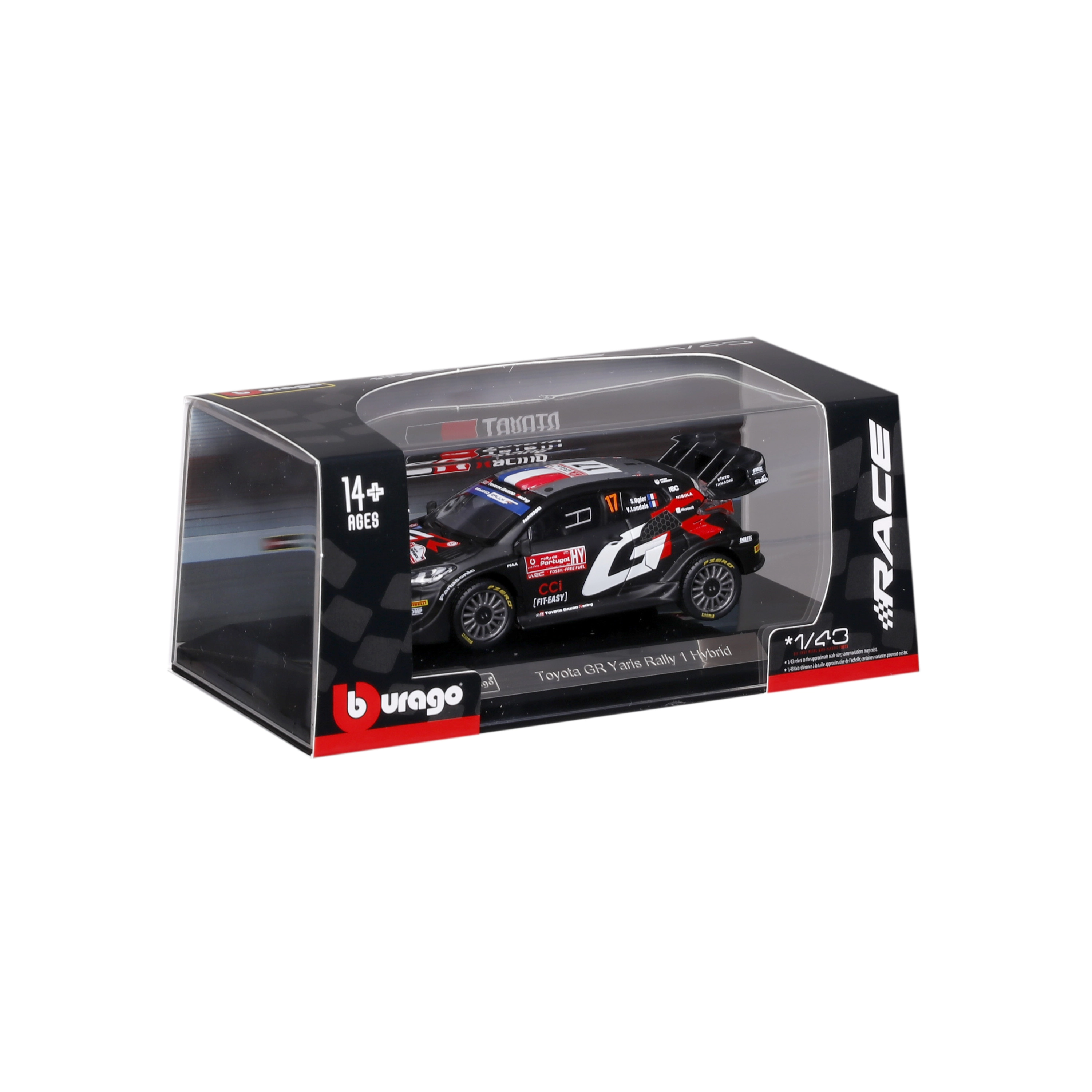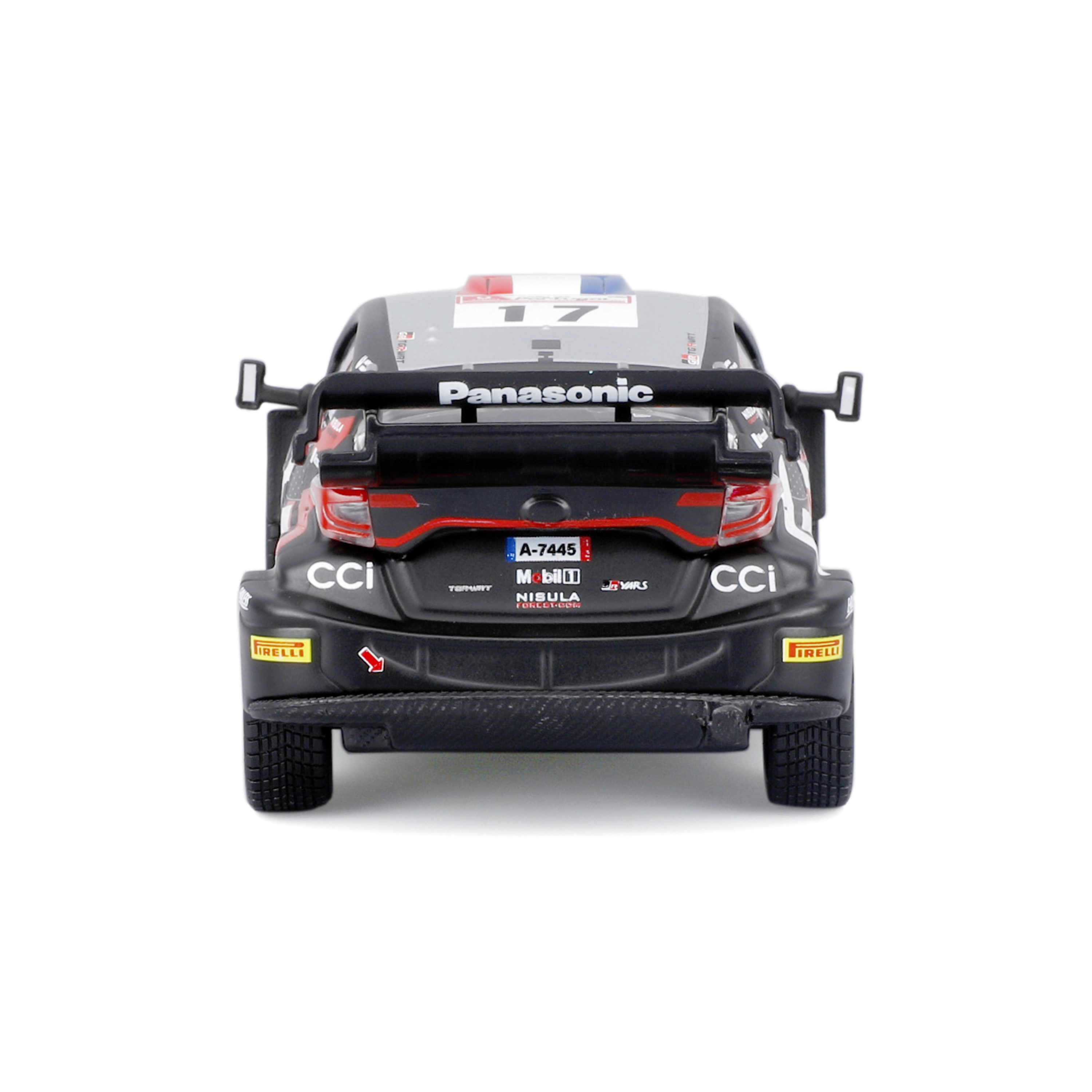 Denne præcist udførte metalmodel repræsenterer rallyspecialet TOYOTA GR Yaris Rally1 Hybrid #17 i designet fra TOYOTA GAZOO Racings kørere. Den udmærker sig ved skarpe linjer, troværdig sponsorbemaling og funktionelle detaljer som realistiske hjul og stor bagvinge.