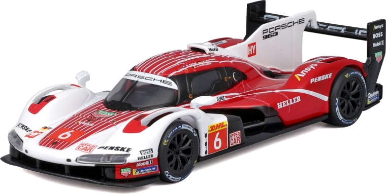 Den ikoniske prototype Porsche 963 i attraktiv rød‑hvid bemaling leverer trofaste karrosseridetaljer, en markant vinge og realistiske sponsormærkater. Modellen i skala 1:43 er et glimrende valg for samlere og bilentusiaster, der sætter pris på kvalitetsarbejde og et imponerende udtryk.