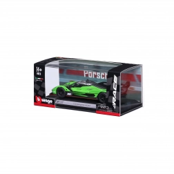 Modellen er sikkert placeret i en dekorativ æske med gennemsigtigt vindue – perfekt til udstilling og som gave til motorsportsfans.