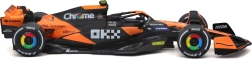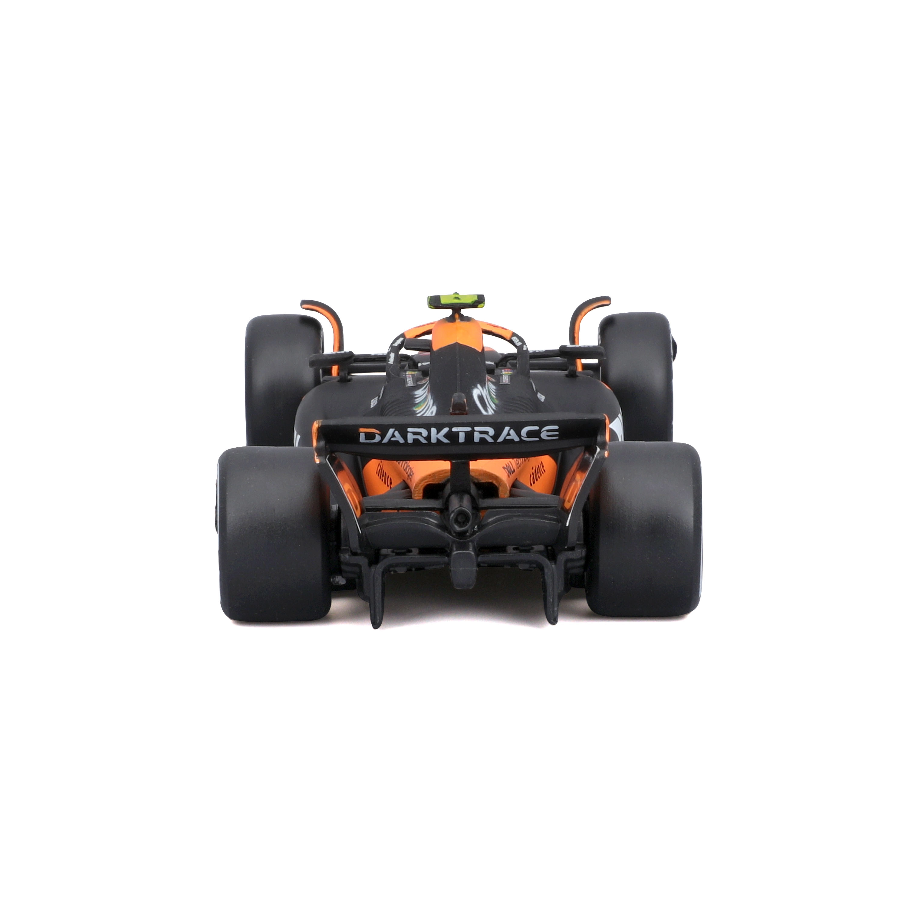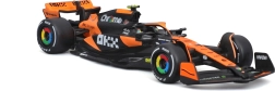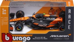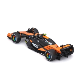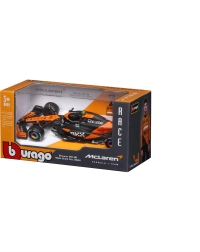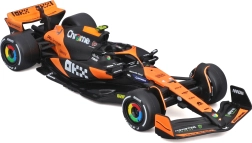 Denne officielt licenserede metalmodel af F1 fra Bburago leverer det autentiske look fra raceren McLaren MCL38 i Senna-udgaven. Den udmærker sig ved den præcise karrosseriform, den markante orange‑sorte lakering og omhyggeligt udførte detaljer som vinger, halo og partnerlogoer.